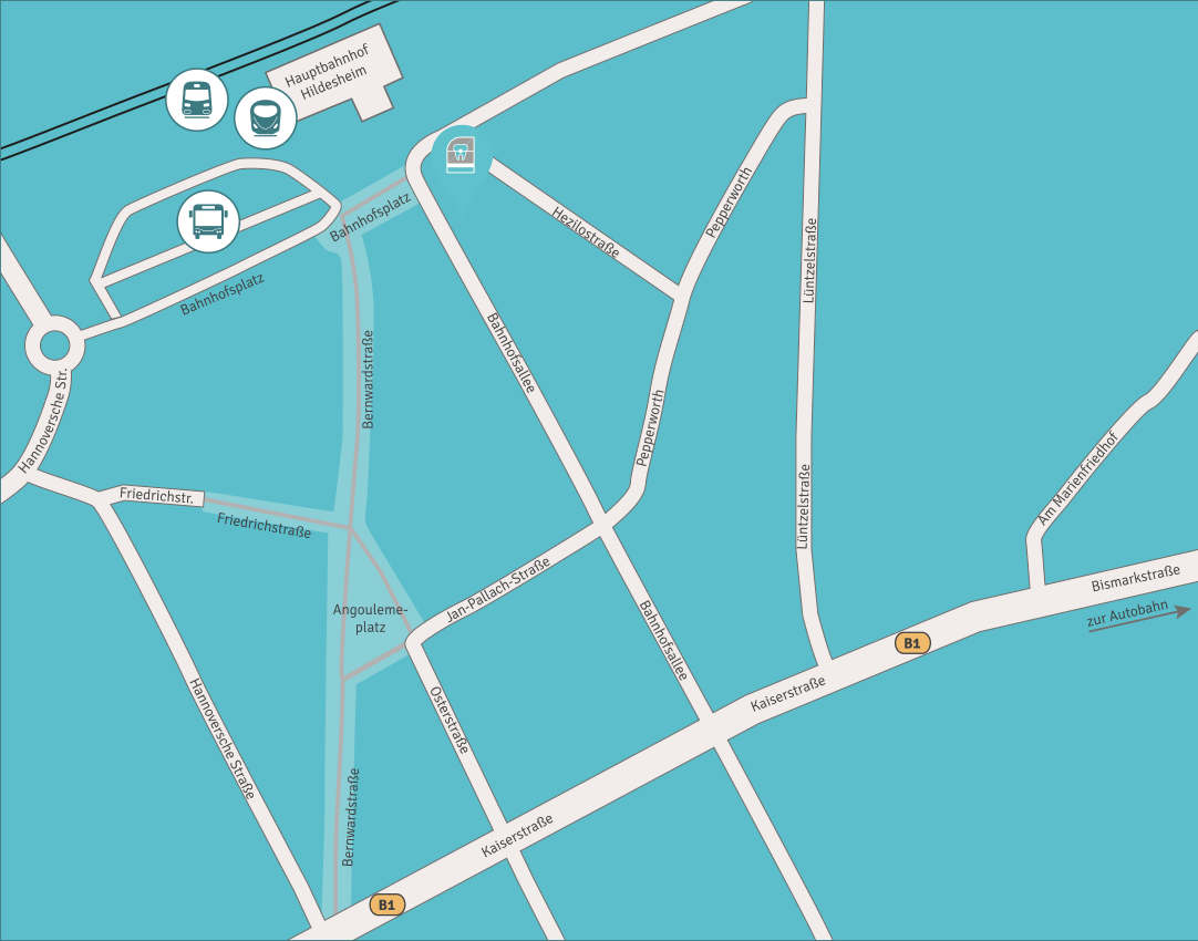 Unsere Praxis befindet sich in unmittelbarer Nähe zum Hauptbahnhof Hildesheim.